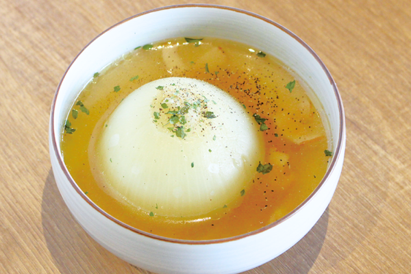 - 4 玉ねぎの形をくずさないように器に盛ってスープを注ぎ、パセリをふる。お好みで黒こしょうを追加して完成。