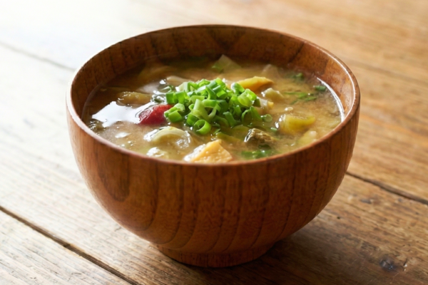 山芋(ヤマノイモ)をはじめ、根菜類をたっぷり入れた具だくさん味噌汁。