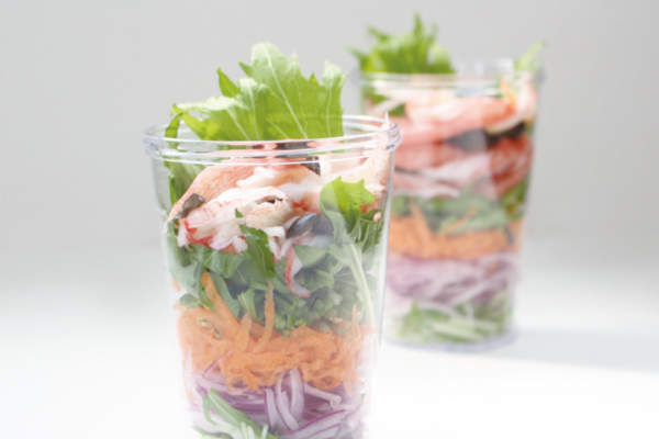 (例:かにかま、水菜、オリーブ、人参、紫玉ねぎ) 容器サイズに合わせて