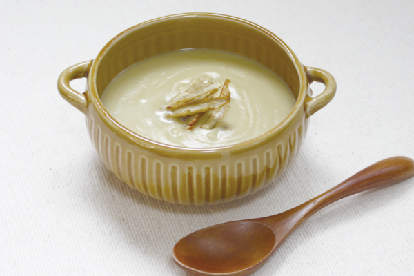 - 3 ミキサーで攪拌し、鍋に戻す。 豆乳を加えて温め、塩で味を調えたら出来上がり。 ※沸騰させないよう注意。