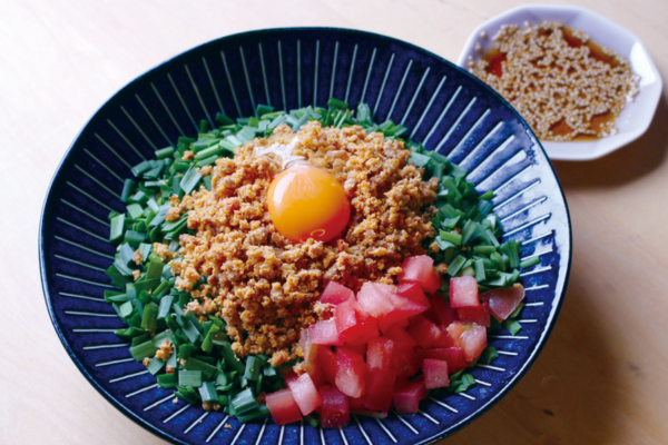 たっぷりにらと肉みそ 台湾まぜそば